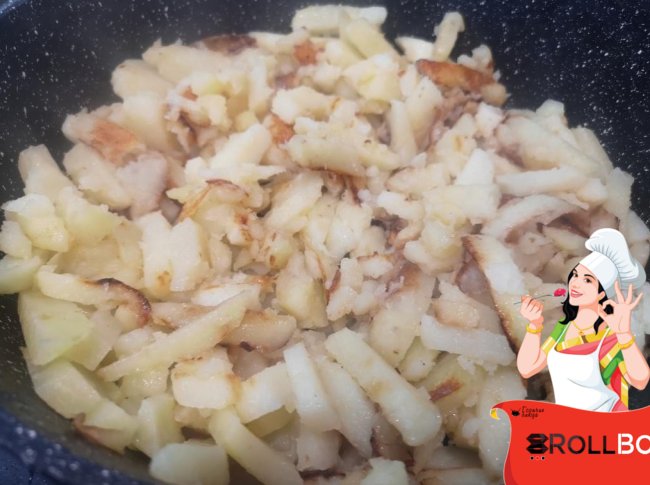 Отдельно жарим на растительном масле картофель, нарезанный соломкой.